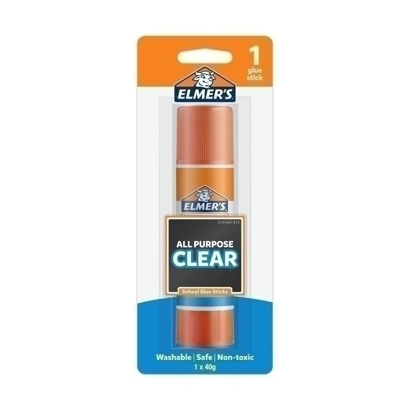 Elmers All Purpose Glue Sticks 40g Bx6 is neat, easy and convenient for paper gluing. Dries fast, clear and colourless. Washes easily off hands and out of clothes.
